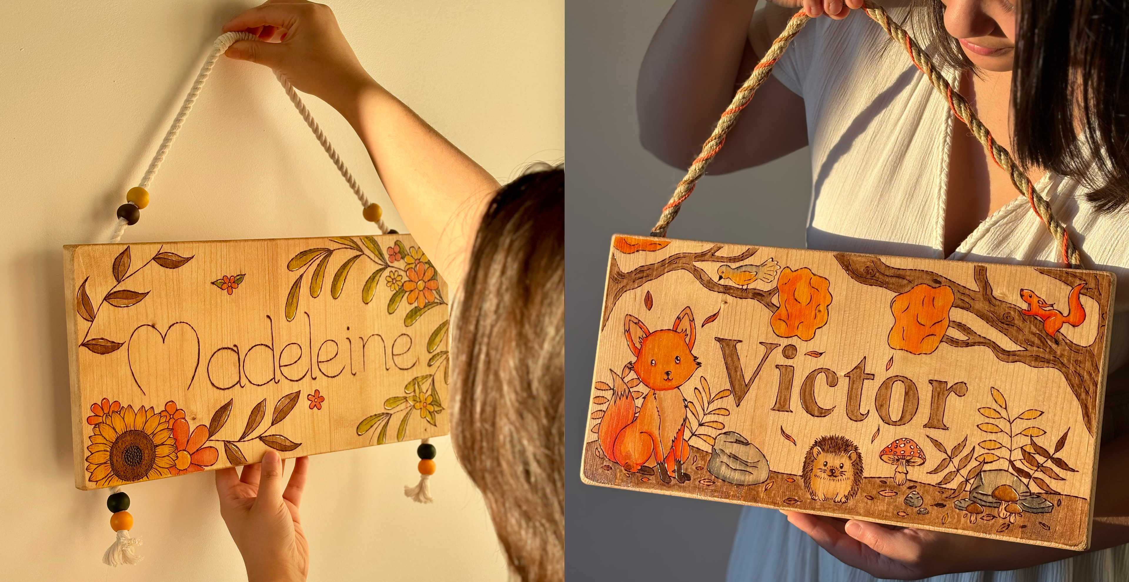 Découvrez l'univers de chaque pancarte et laissez-vous emporter par la magie de leur histoire ! Chaque modèle peut être personnalisé avec le prénom de votre choix, pour offrir un cadeau unique à celui qui la reçoit 💛