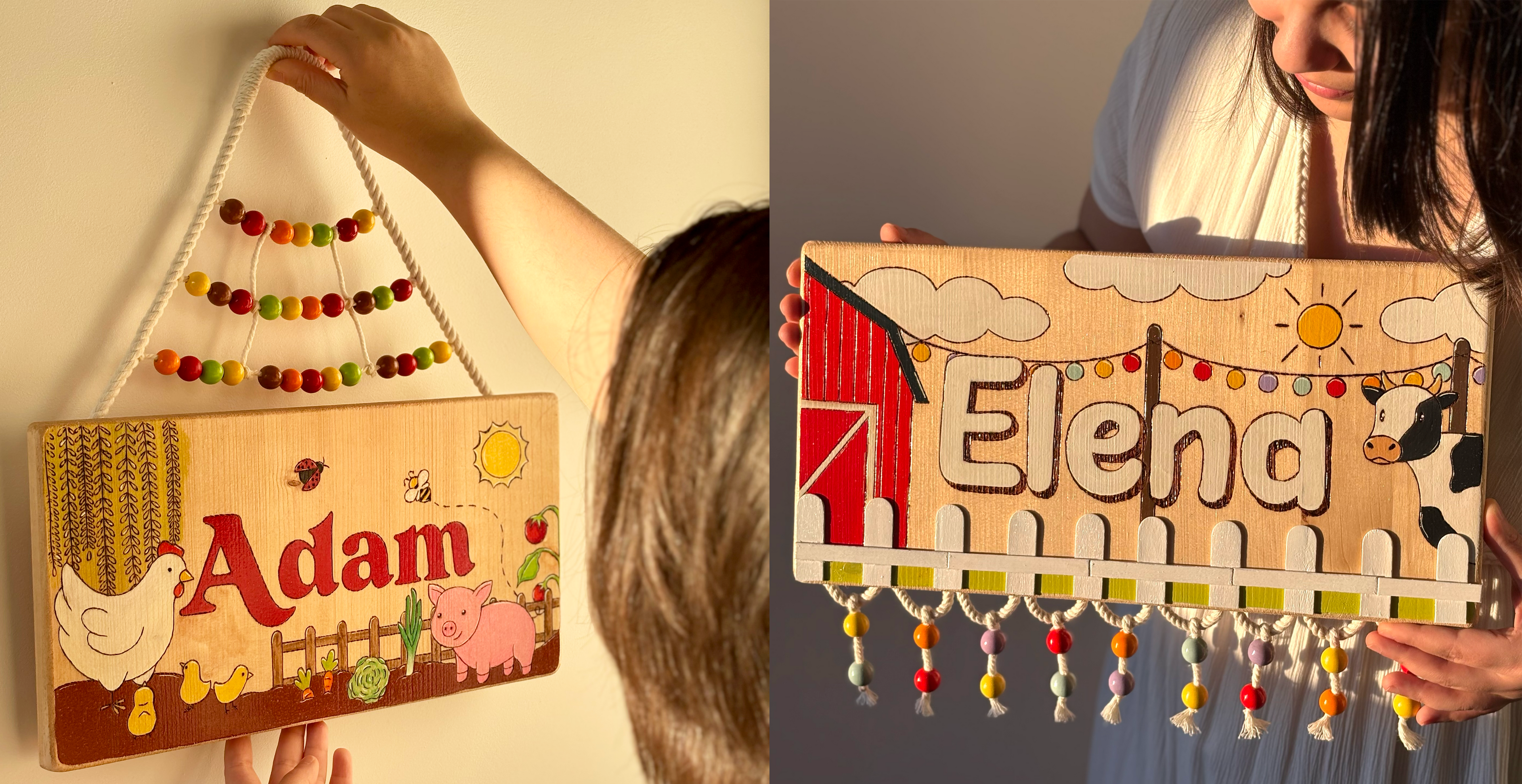 Découvrez l'univers de chaque pancarte et laissez-vous emporter par la magie de leur histoire ! Chaque modèle peut être personnalisé avec le prénom de votre choix, pour offrir un cadeau unique à celui qui la reçoit 💛