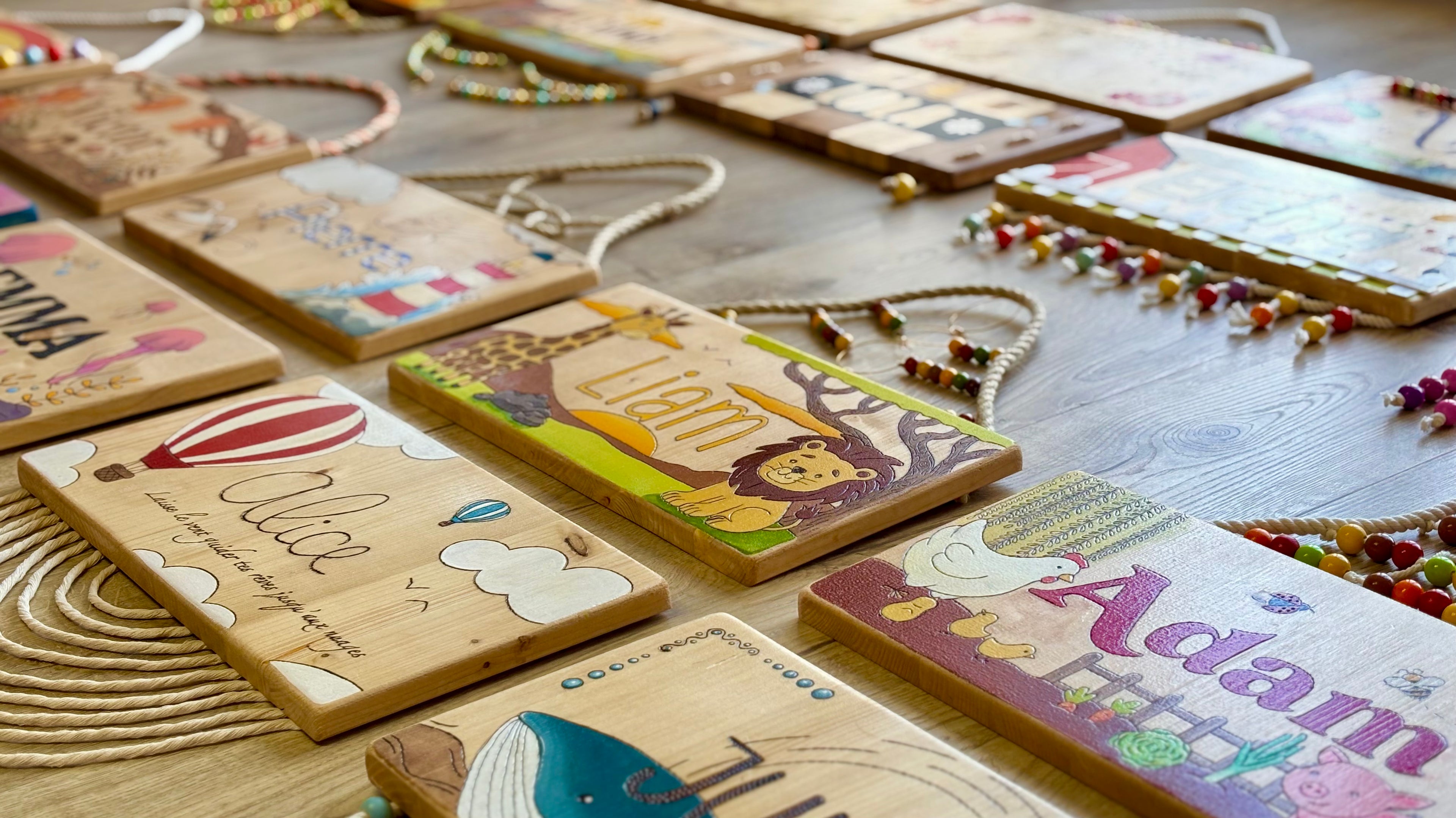 Choisissez le thème, la police d'écriture, les couleurs, la corde, et les perles. Je crée pour vous une pancarte unique !