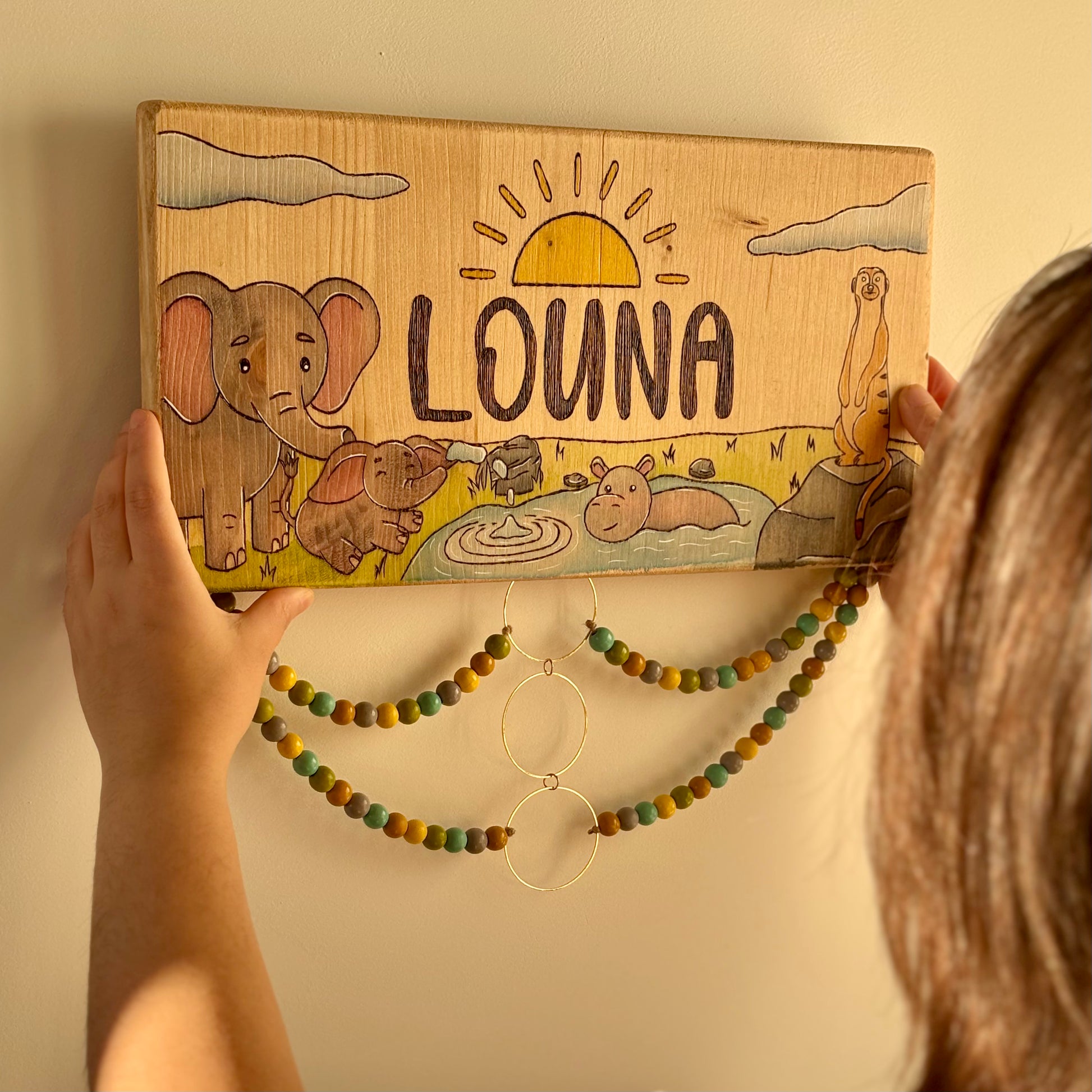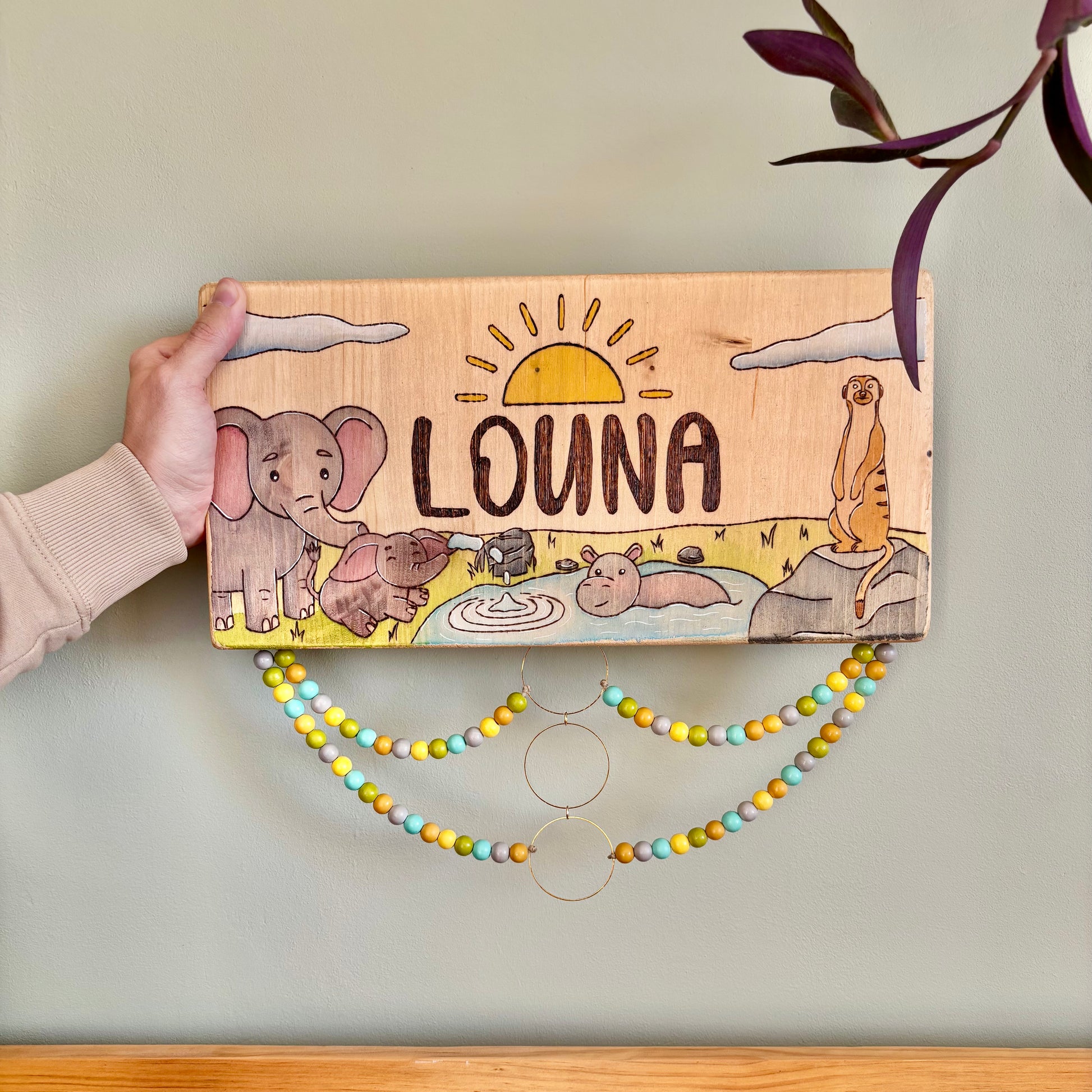 Pancarte en bois pyrogravée, peinte et finie à la main