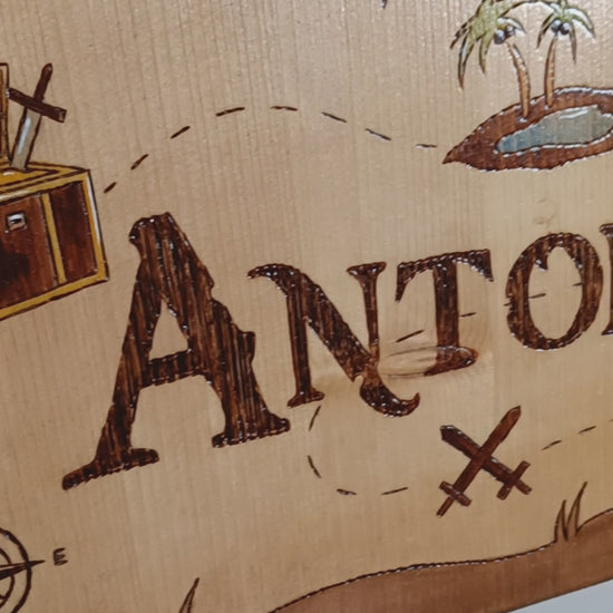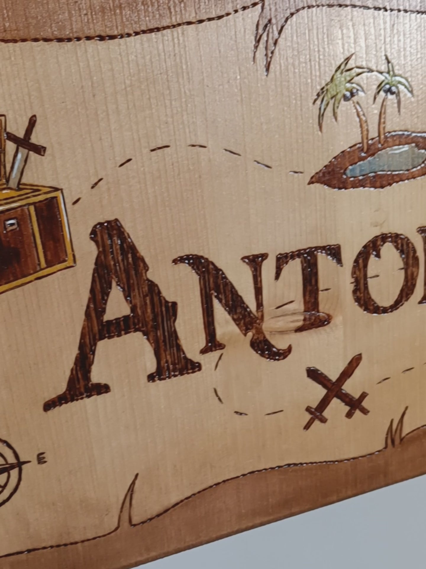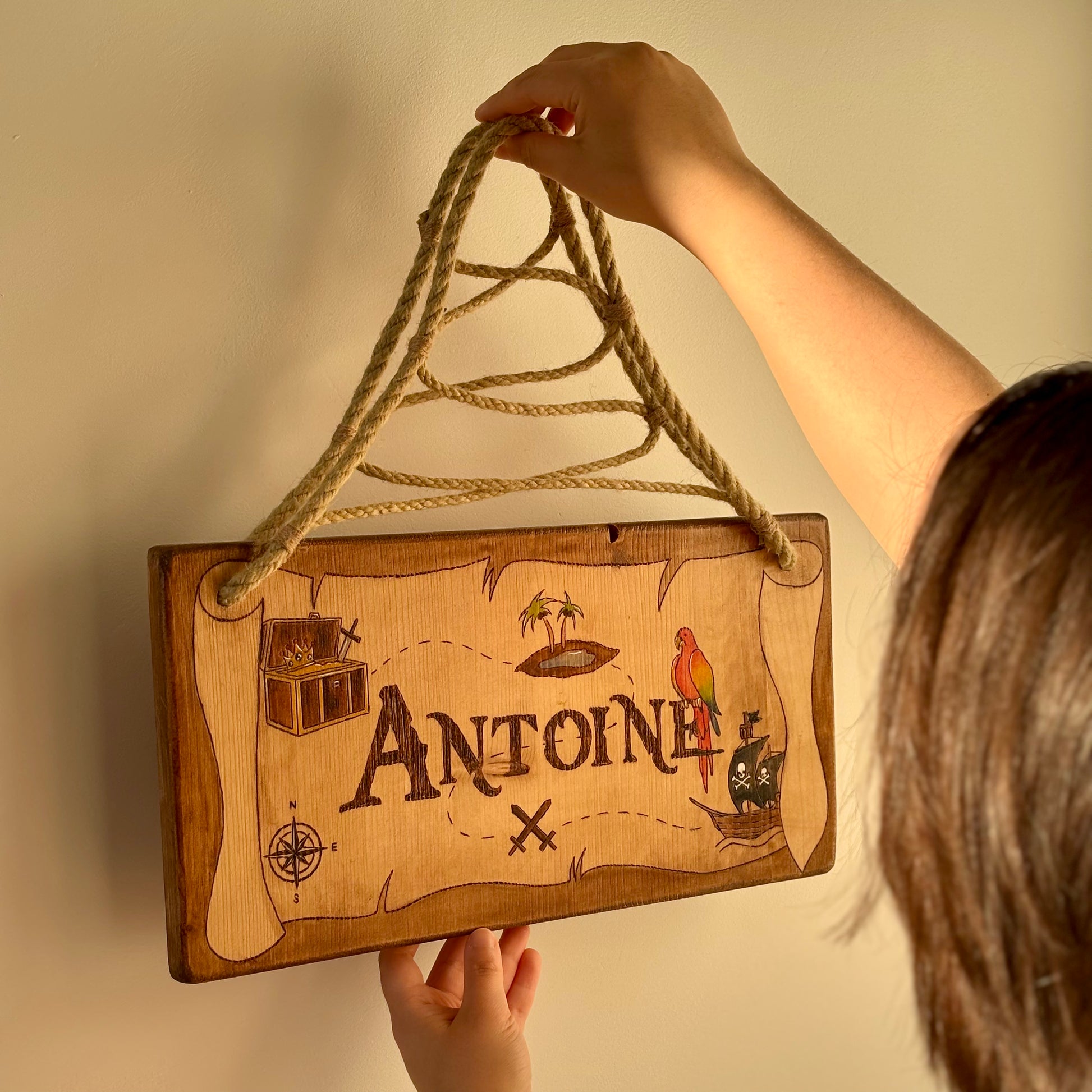 Pancarte en bois pyrogravée, peinte et finie à la main