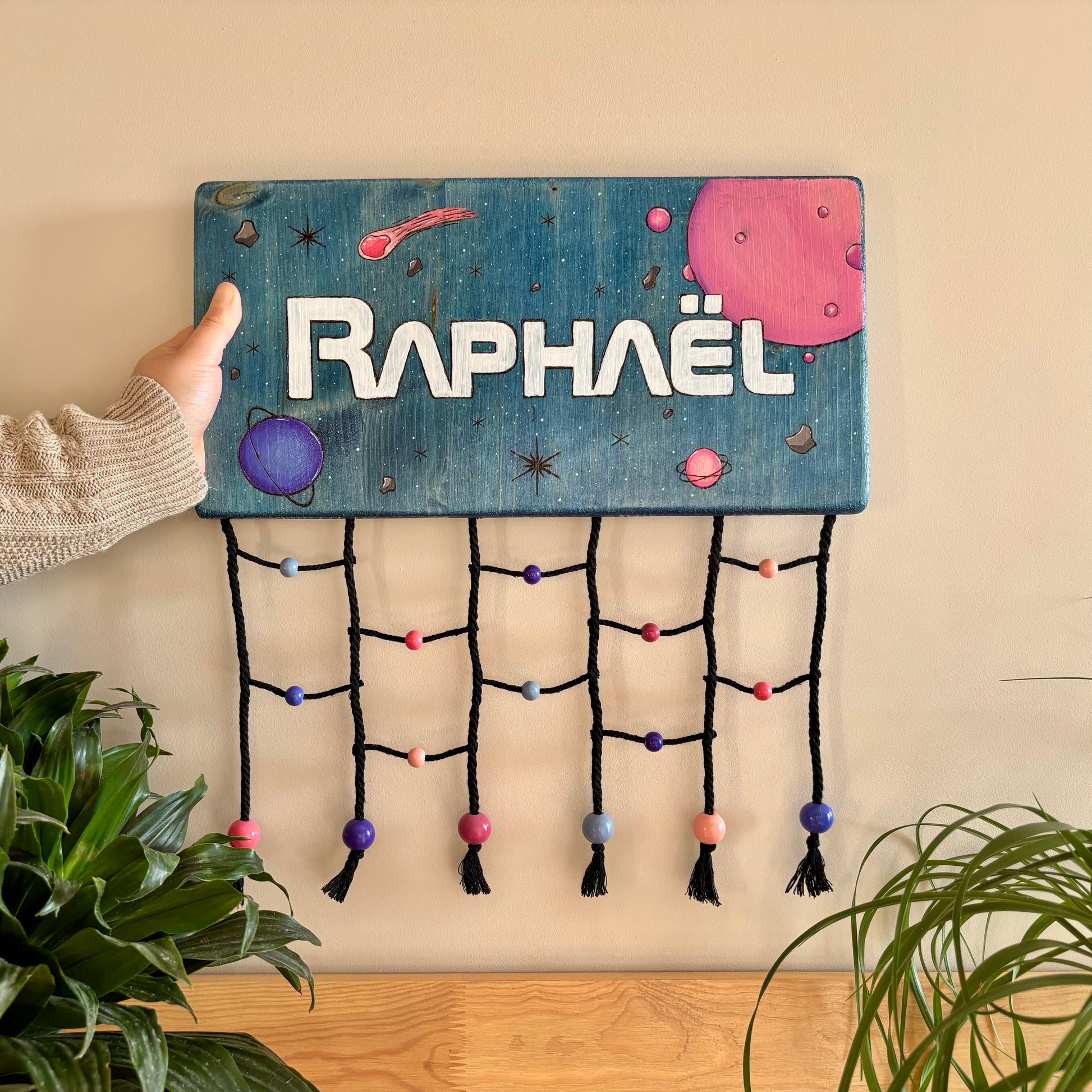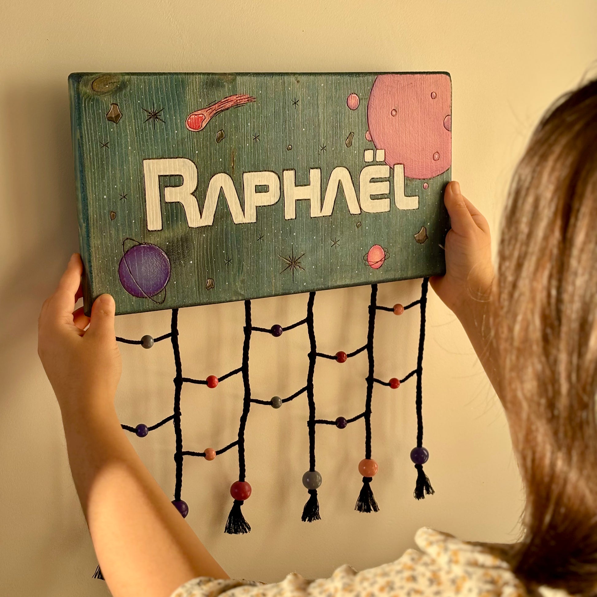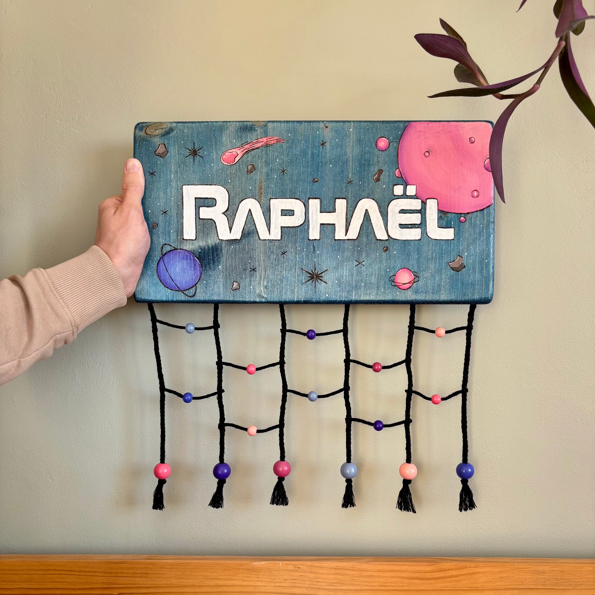 Pancarte en bois pyrogravée, peinte et finie à la main