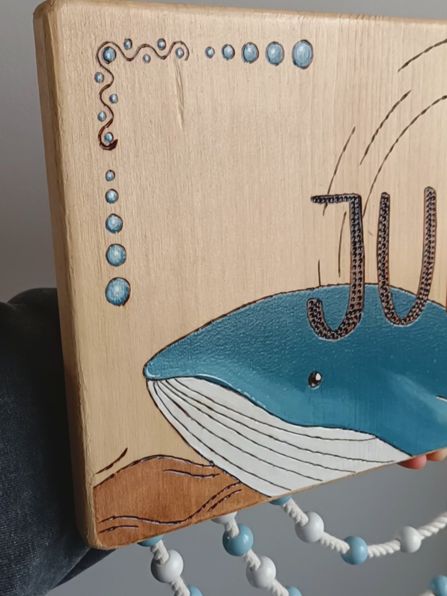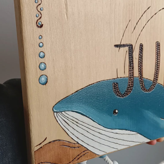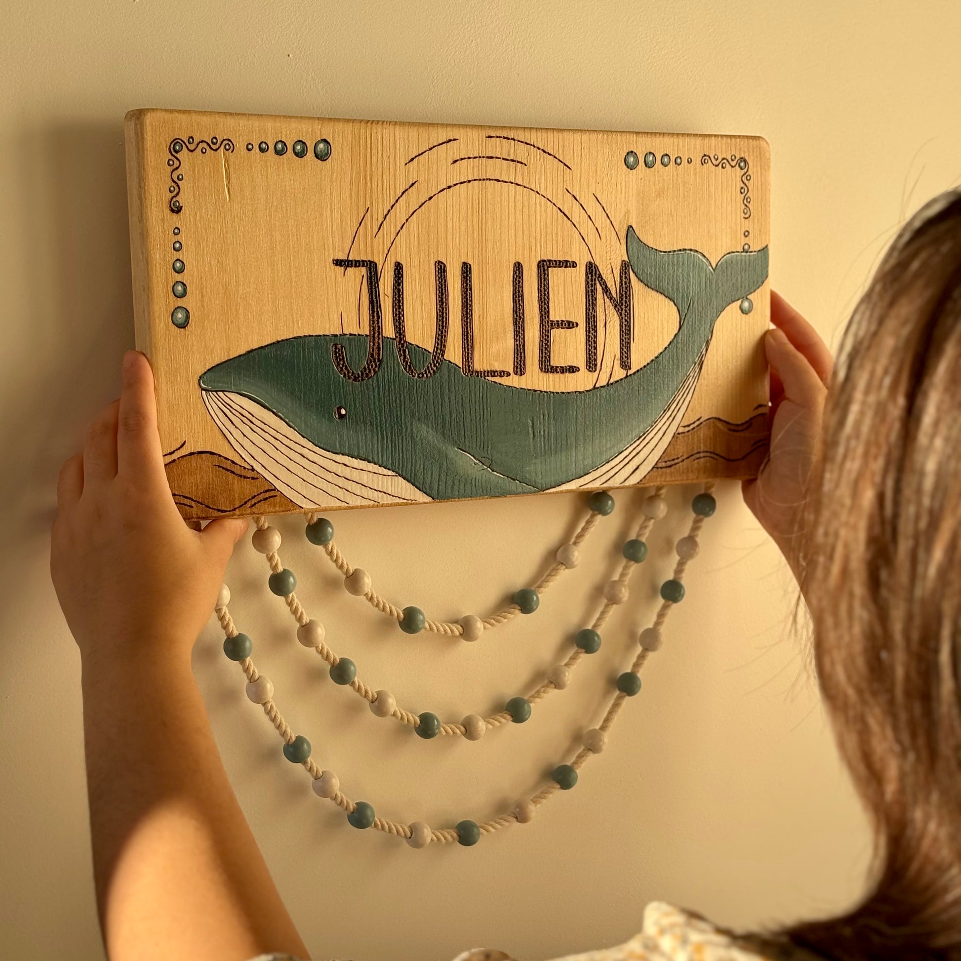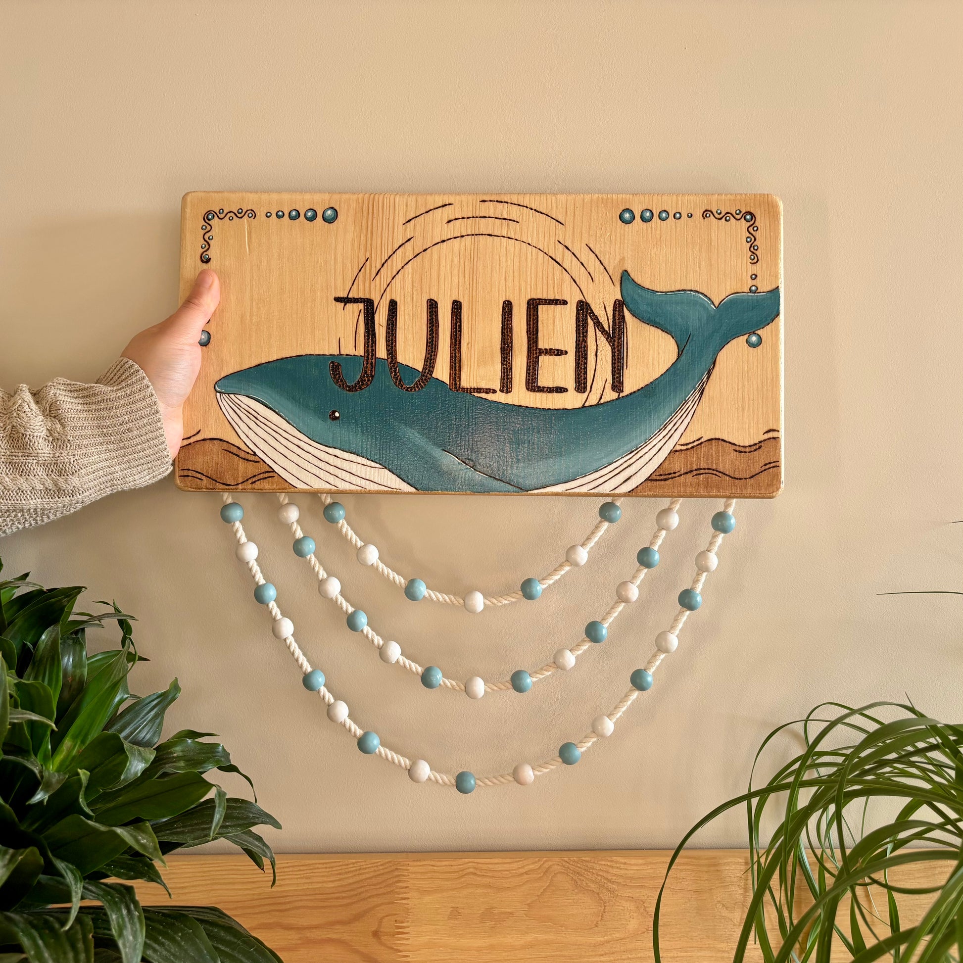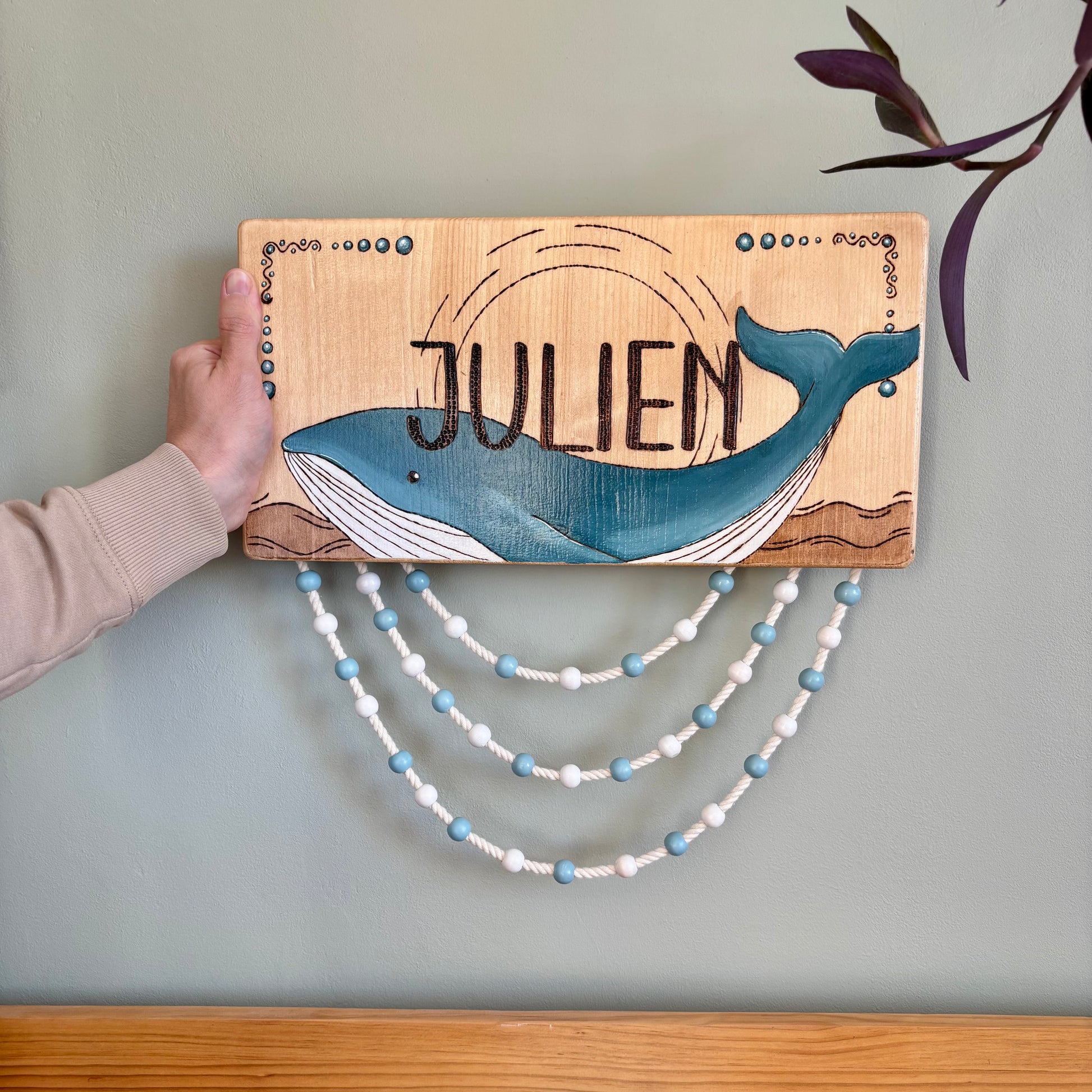 Pancarte en bois pyrogravée, peinte et finie à la main
