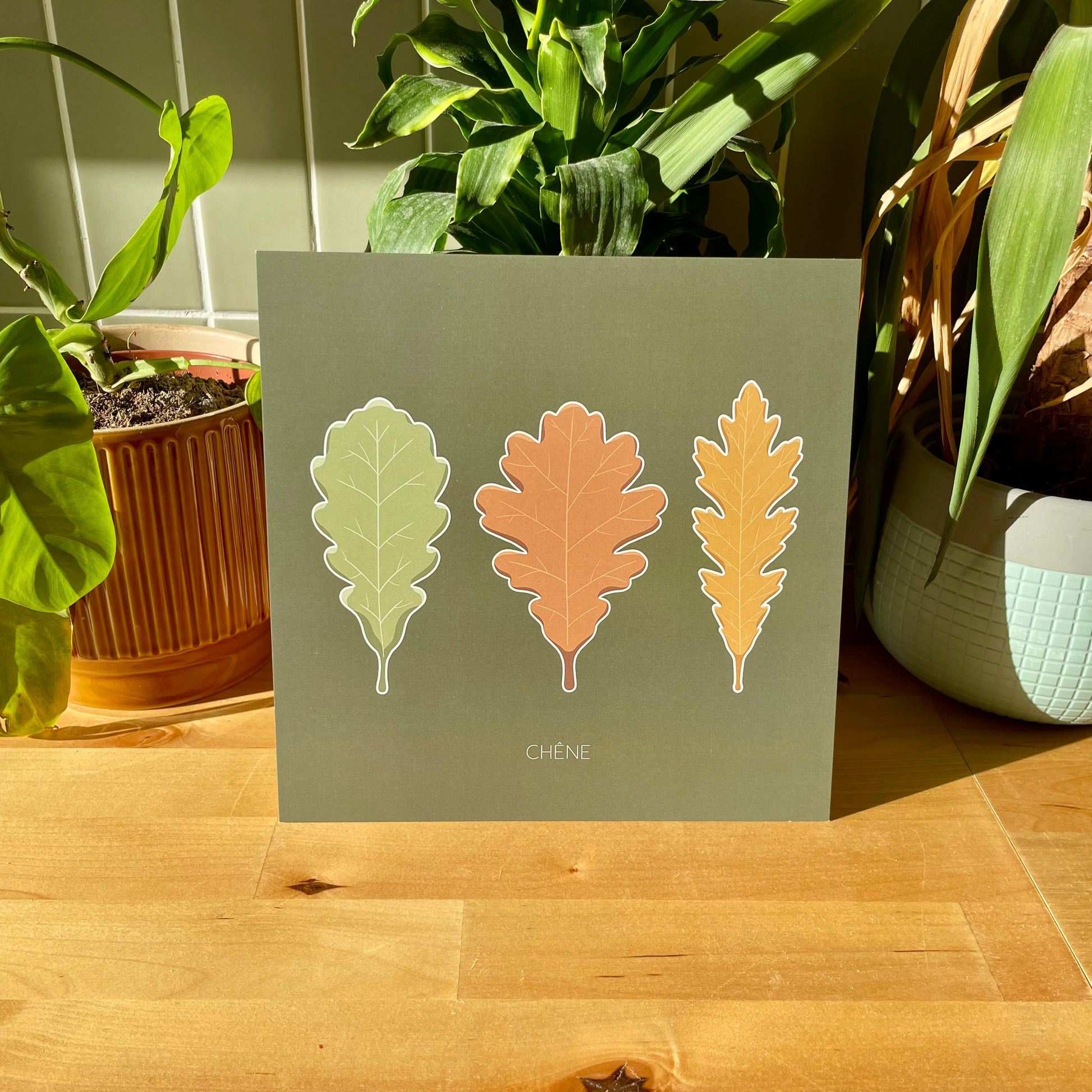 Arbre majestueux et emblématique de la forêt, le chêne est souvent considéré comme le Roi. Il peut parfois vivre plus de 500 ans, et atteindre des hauteurs impressionnantes ! Il est solide, puissant, et profondément enraciné dans le sol. Il symbolise la force, la longévité et la sagesse à travers les âges. 🍃